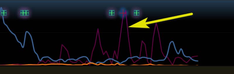 上图:六七八月的量比图示,趋势力度(红线)没有一次触顶,欠缺力度。